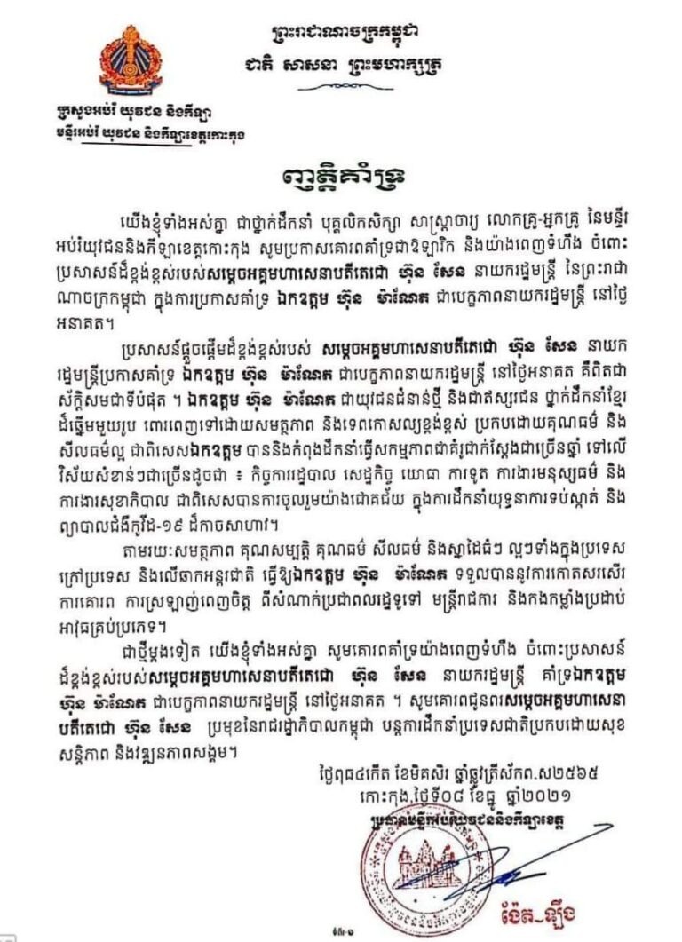 សេចក្តីថ្លែងការណ៍ របស់សមាគមនារីកម្ពុជាដើម្បីសន្តិភាព និងអភិវឌ្ឍន៍ ខេត្តកោះកុង ស្តីពីការបោះឆ្នោតជ្រើសរើសក្រុមប្រឹក្សា ឃុំ សង្កាត់ អាណត្តិទី៥ ឆ្នាំ២០២២