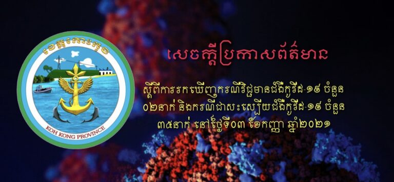 សេចក្តីប្រកាសព័ត៌មាន ស្តីពីការរកឃើញករណីវិជ្ជមានជំងឺកូវីដ-១៩ ចំនួន ០២នាក់(ជាករណីថ្ងៃទី២ ខែកញ្ញា ឆ្នាំ២០២១ ដែលមិនបានប្រកាស) និងករណីជាសះស្បើយជំងឺកូវីដ-១៩ ចំនួន ៣៥នាក់ នៅថ្ងៃទី០៣ ខែកញ្ញា ឆ្នាំ២០២១