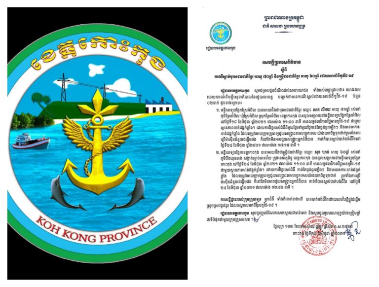 សេចក្តីអំពាវនាវ របស់រដ្ឋបាលខេត្តកោះកុង