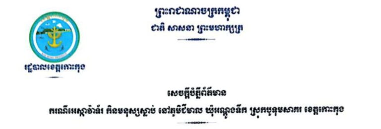 សេចក្តីបំភ្លឺព័ត៌មាន ករណីអេស្កាវ៉ា កិនមនុស្សស្លាប់ នៅភូមិជីមាល ឃុំអណ្តូងទឹក ស្រុកបូទុមសាគរ ខេត្តកោះកុង