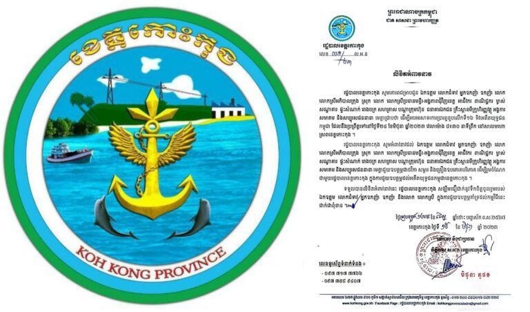 លិខិតអំពាវនាវ រដ្ឋបាលខេត្តកោះកុង