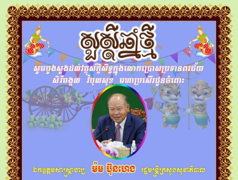 សារលិខិតគោរពជូនពរ ឯកឧត្ដមសាស្រ្តាចារ្យ ម៉ម ប៊ុនហេង រដ្ឋមន្ត្រីក្រសួងសុខាភិបាល ក្នុងឱកាសពិធីបុណ្យចូលឆ្នាំប្រពៃណីជាតិខ្មែរ គោរពជូនពរពី ឯកឧត្ដមវេជ្ជបណ្ឌិត ទៅ ម៉ឹង ប្រធានមន្ទីរសុខាភិបាលនៃរដ្ឋបាលខេត្តកោះកុង