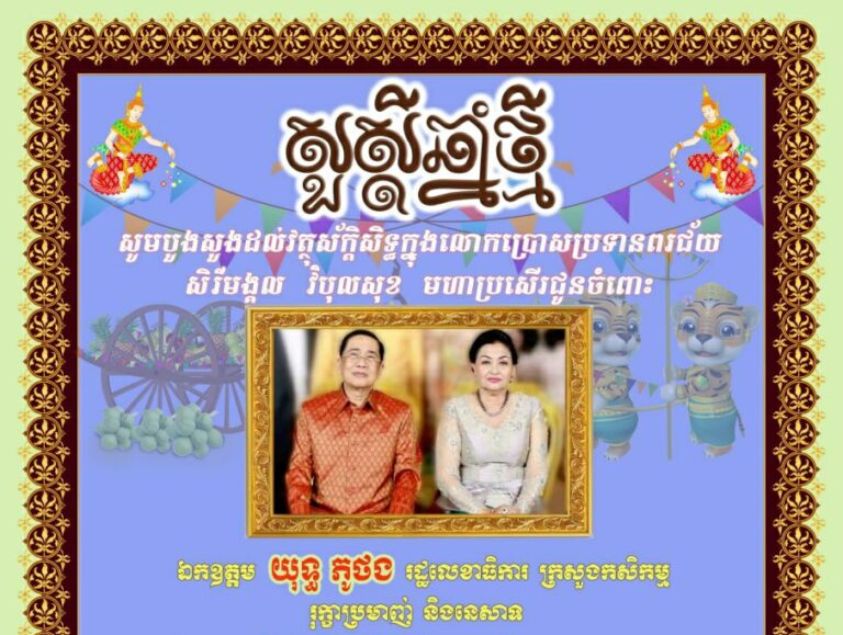 សារលិខិតគោរពជូនពរ ឯកឧត្ដម យុទ្ធ ភូថង រដ្ឋលេខាធិការក្រសួងកសិកម្ម រុក្ខាប្រមាញ់ និងនេសាទ ក្នុងឱកាសពិធីបុណ្យចូលឆ្នាំប្រពៃណីជាតិខ្មែរ គោរពជូនពរពី ឯកឧត្ដមវេជ្ជបណ្ឌិត ទៅ ម៉ឹង ប្រធានមន្ទីរសុខាភិបាលនៃរដ្ឋបាលខេត្តកោះកុង