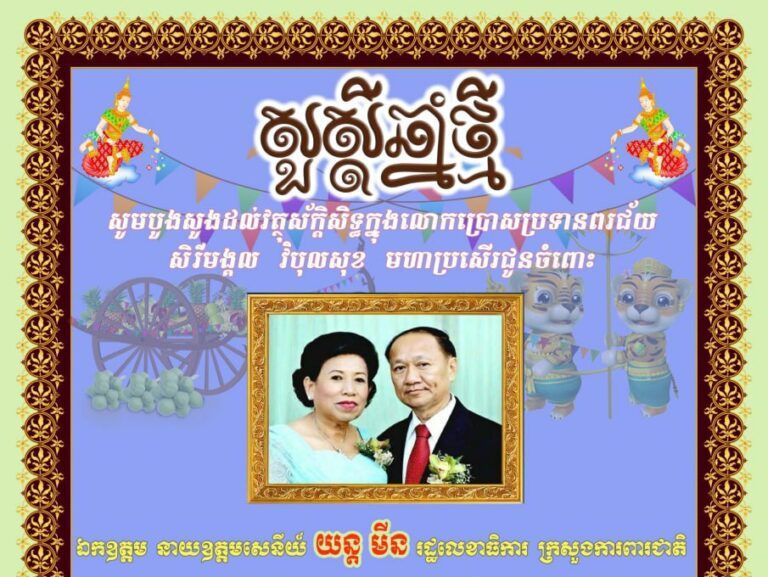 សារលិខិតគោរពជូនពរ ឯកឧត្ដម នាយឧត្ដមសេនីយ៍ យន្ត មីន រដ្ឋលេខាធិការក្រសួងការពារជាតិ ក្នុងឱកាសពិធីបុណ្យចូលឆ្នាំប្រពៃណីជាតិខ្មែរ គោរពជូនពរពី ឯកឧត្ដមវេជ្ជបណ្ឌិត ទៅ ម៉ឹង ប្រធានមន្ទីរសុខាភិបាលនៃរដ្ឋបាលខេត្តកោះកុង
