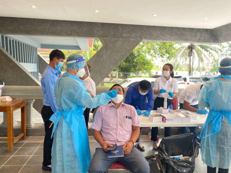 ក្រុមការងារឆ្លើយតបបន្ទាន់ជំងឺឆ្លង នៃមន្ទីរសុខាភិបាលនៃរដ្ឋបាលខេត្តកោះកុង បានចុះអនុវត្តវិធានសុខាភិបាល ធ្វើតេស្តរកកូវីដ-១៩ ចែកម៉ាស់ វាស់កំដៅ បាញ់អាល់កុលលាងដៃ ជូនគណៈអធិបតី និងអ្នកចូលរួមក្នុងសិក្ខាសាលាស្ដីពី “ការិយាល័យ ព័ត៌មានឈ្លាសវៃ និងអភិបាលកិច្ចល្អក្នុងវិស័យព័ត៌មាន” ដែលប្រព្រឹត្តទៅនៅថ្ងៃចន្ទ-អង្គារ ៤-៥រោច ឆ្នាំឆ្លូវ ត្រីស័ក ព.ស ២៥៦៥ ត្រូវនឹងថ្ងៃទី ២១-២២ ខែមីនា ឆ្នាំ២០២២ នៅសាលមហោស្រពខេត្តកោះកុង