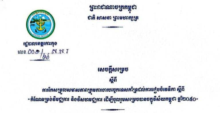 សេចក្តីសម្រេច ស្តីពីការកែសម្រួលសមាសភាពគណៈកម្មាធិការប្រជាជន និងអភិវឌ្ឍន៍ខេត្តកោះកុង