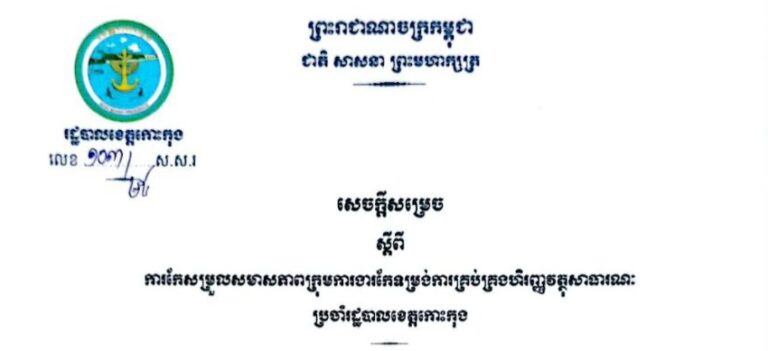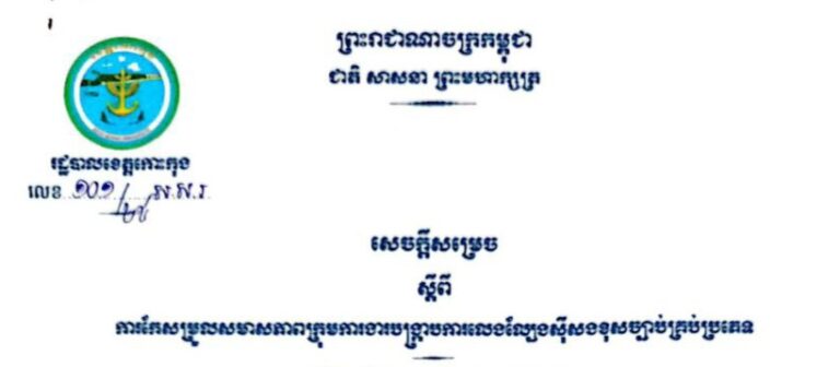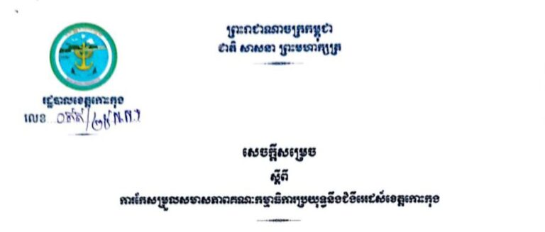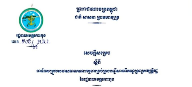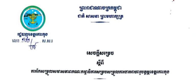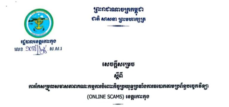 សេចក្តីសម្រេច ស្តីពីការកែសម្រួលសមាសភាពគណៈកម្មការចំពោះកិច្ចប្រយុទ្ធប្រឆាំងការឆបោកតាមប្រព័ន្ធបច្ចេកវិទ្យា (ONLINE SCAMS) ខេត្តកោះកុង