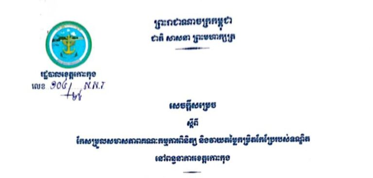 សេចក្តីសម្រេច ស្តីពីការកែសម្រួលសមាសភាព អនុគណៈកម្មាធិការវិនិយោគខេត្តកោះកុង