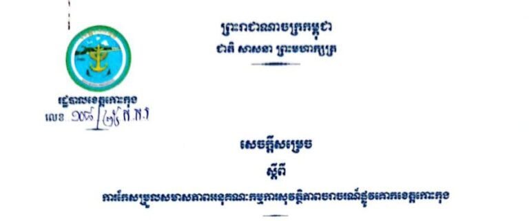 សេចក្តីសម្រេច ស្តីពីការកែសម្រួលសមាសភាពអនុគណៈកម្មការសុវត្ថិភាពចរាចរណ៍ផ្លូវគោកខេត្តកោះកុង