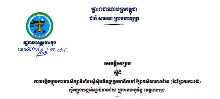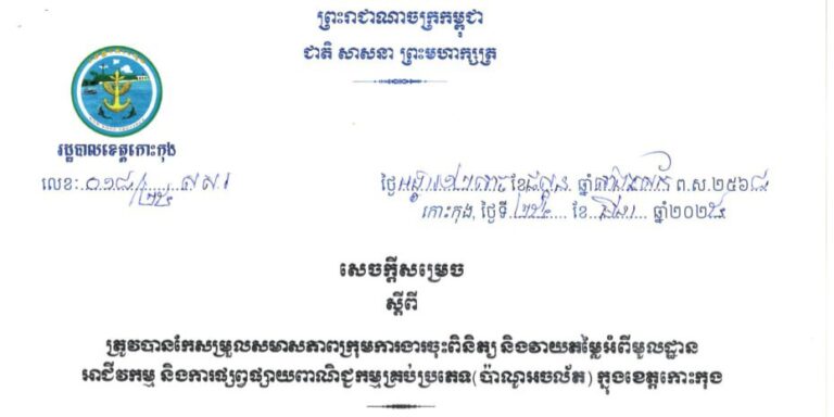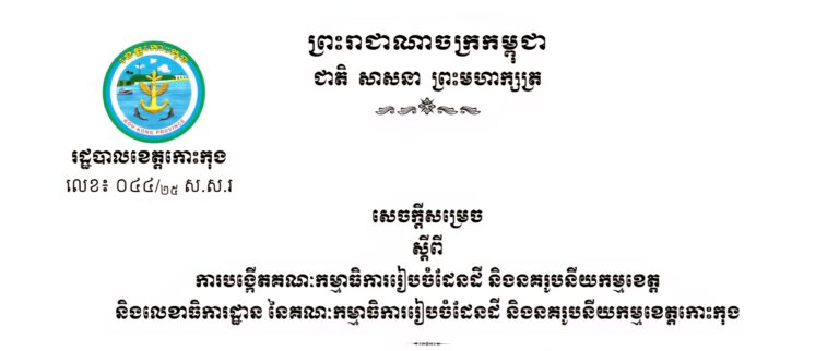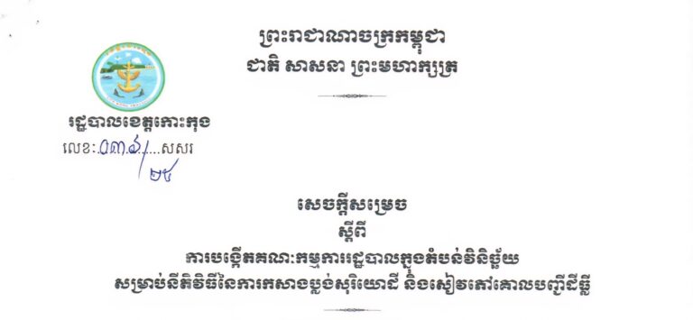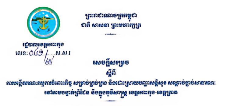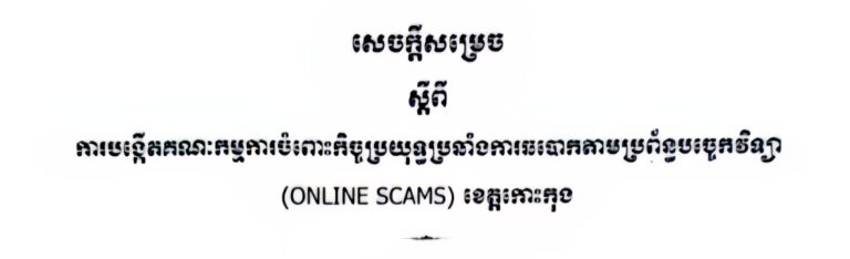 សេចក្តីសម្រេច ស្តីពីការបង្កើតគណៈកម្មការចំពោះកិច្ចប្រយុទ្ធប្រឆាំងការឆបោកតាមប្រព័ន្ធបច្ចេកវិទ្យា (ONLINE SCAMS) ខេត្តកោះកុង