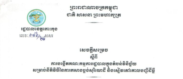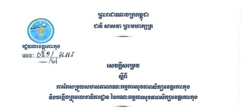 សេចក្តីសម្រេច ស្តីពីការកែសម្រួលសមាសភាពក្រុមការងារបច្ចេកទេសចម្រុះវិស័យអប់រំថ្នាក់ក្រោមជាតិ សម្រាប់ខេត្តកោះកុង