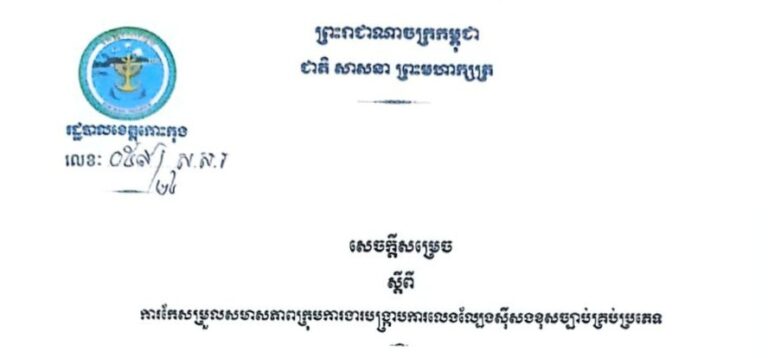 សេចក្តីសម្រេច ស្តីពីការកែសម្រួលសមាសភាពក្រុមការងារបង្ក្រាបការលេងល្បែងស៊ីសងខុសច្បាប់គ្រប់ប្រភេទ
