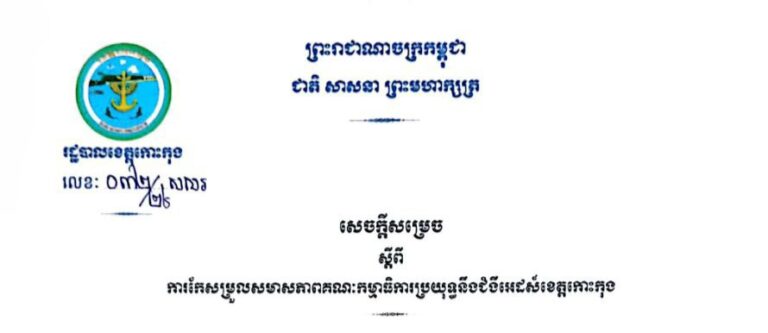 សេចក្តីសម្រេច ស្តីពីការកែសម្រួលសមាសភាពគណៈកម្មាធិការប្រយុទ្ធនឹងជំងឺអេដស៍ខេត្តកោះកុង