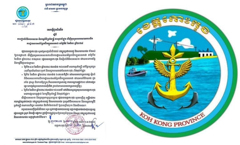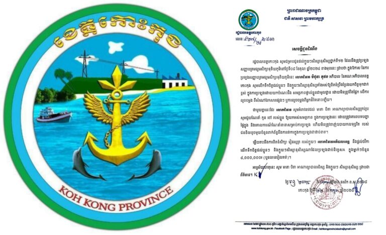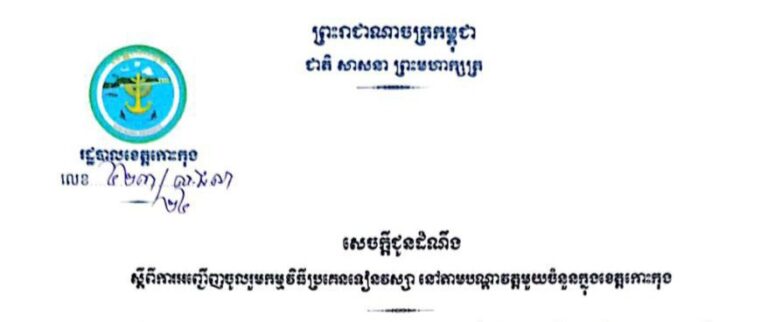 លិខិតអំពាវនាវ របស់រដ្ឋបាលខេត្តកោះកុង