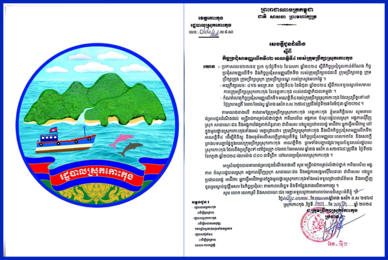 សេចក្តីជូនដំណឹង ស្តីពីកិច្ចប្រជុំសាមញ្ញលើកទី២ អាណត្តិទី៤ របស់ក្រុមប្រឹក្សាស្រុកកោះកុង ខេត្តកោះកុង