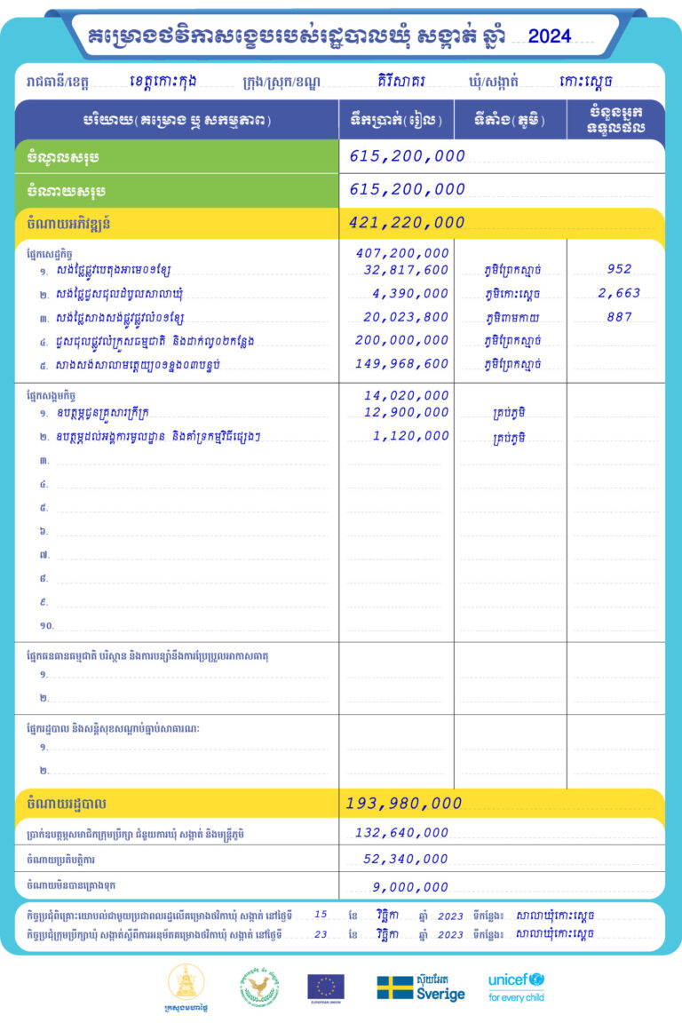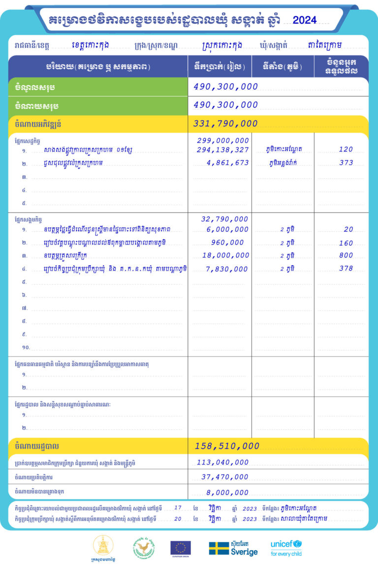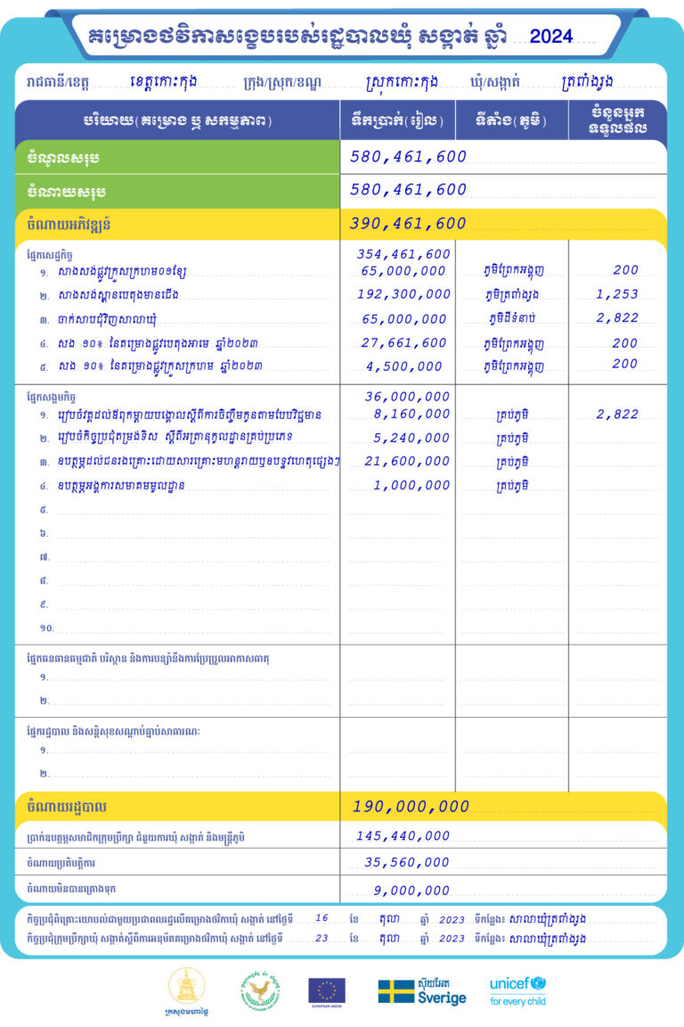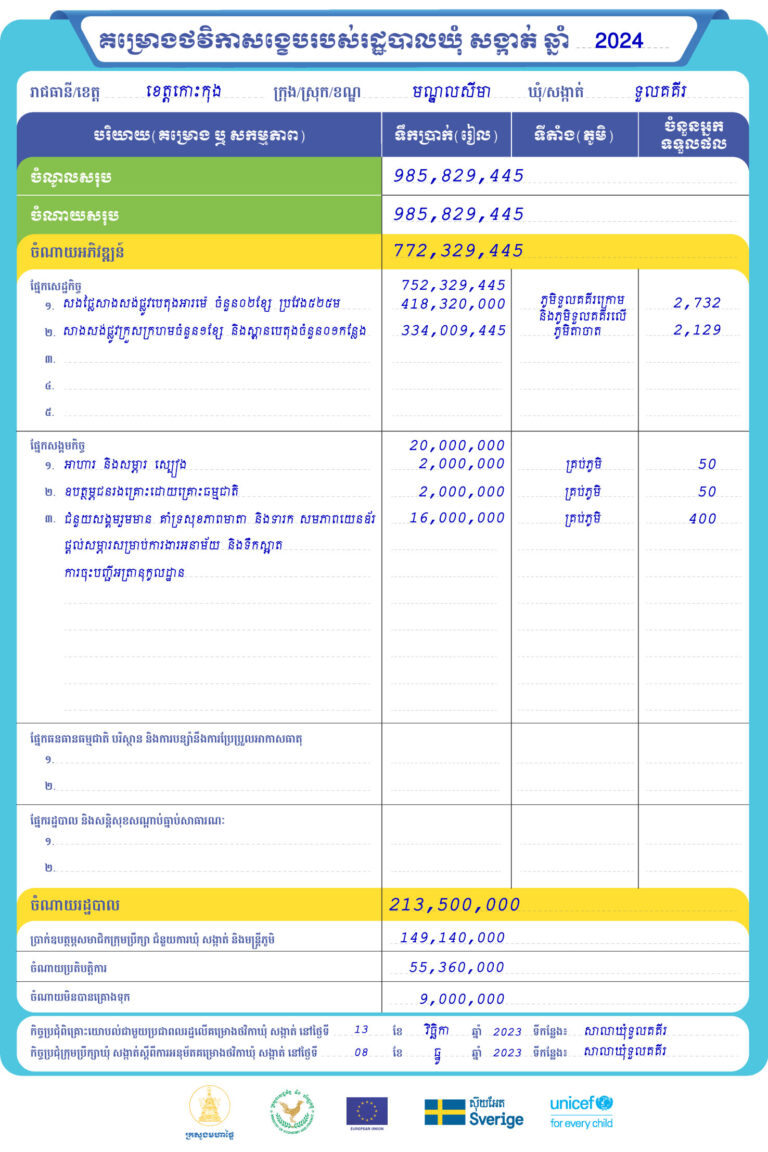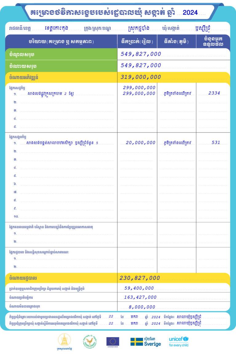 រដ្ឋបាលឃុំឫស្សីជ្រុំ ស្រុកថ្មបាំង ខេត្តកោះកុង មានកិត្តិយស ផ្សព្វផ្សាយជូនសាធារណជនអំពី គម្រោងថវិកាសង្ខេបរបស់រដ្ឋបាលឃុំ សង្កាត់ ឆ្នាំ២០២៤