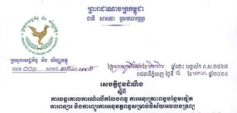 សេចក្តីជូនដំណឹង ស្តីពីការបន្តគោលការណ៍លើកលែងពន្ធ ការអនុគ្រោះពន្ធបន្ថែមទៀត ការពន្យារ និងការព្យួរការអនុវត្តពន្ធសម្រាប់វិស័យអចលនទព្យ