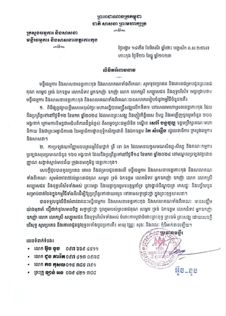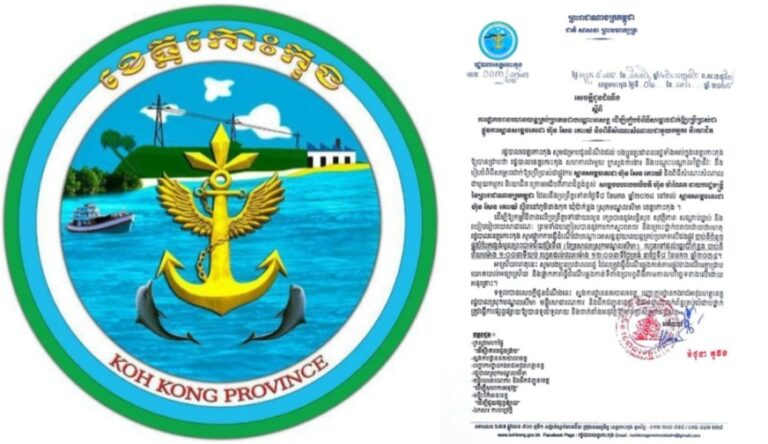 លិខិតអំពាវនាវ របស់រដ្ឋបាលខេត្តកោះកុង