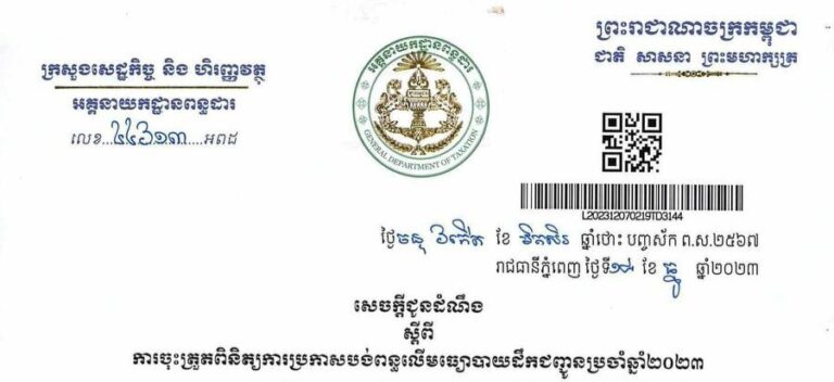 សេចក្តីជូនដំណឹង ស្តីពី ការចុះត្រួតពិនិត្យការប្រកាសបង់ពន្ធលើមធ្យោបាយដឹកជញ្ជូនប្រចាំឆ្នាំ២០២៣
