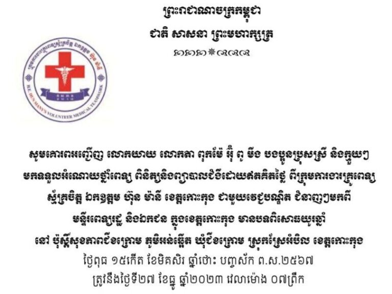 លិខិតអំពាវនាវ របស់រដ្ឋបាលខេត្តកោះកុង
