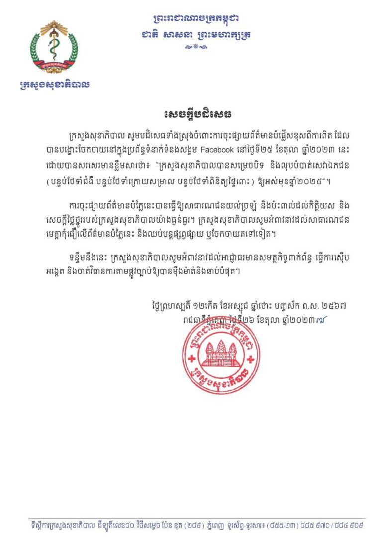 សេចក្តីបដិសេធរបស់ក្រសួងសុខាភិបាល