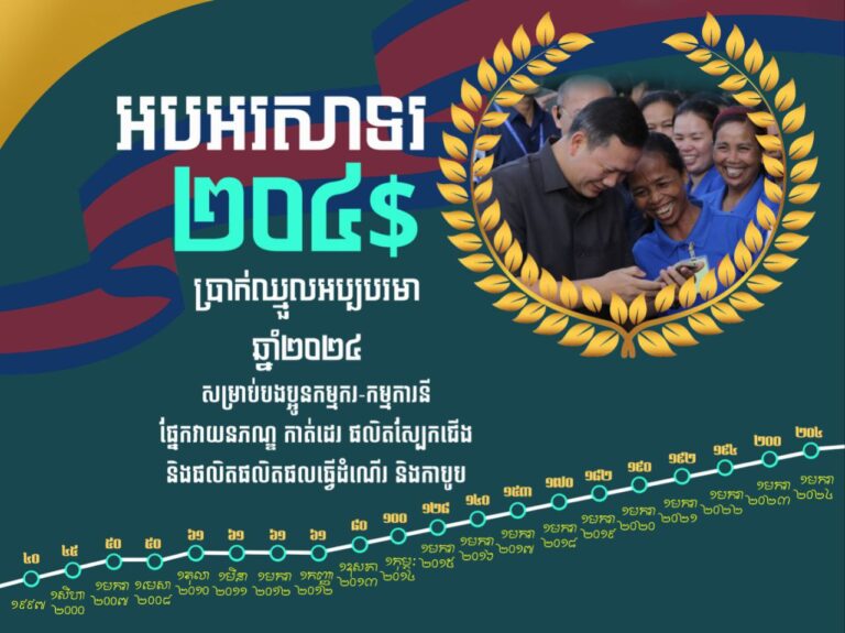 សេចក្តីជូនដំណឹង ស្តីពីការកំណត់ប្រាក់ឈ្នួលអប្បបរមាសម្រាប់កម្មករនិយោជិតផ្នែកវាយនភណ្ឌ កាត់ដេរ ផលិតស្បែកជើង និងផលិតផលិតផលធ្វើដំណើរនិងកាបូប សម្រាប់ឆ្នាំ២០២៤