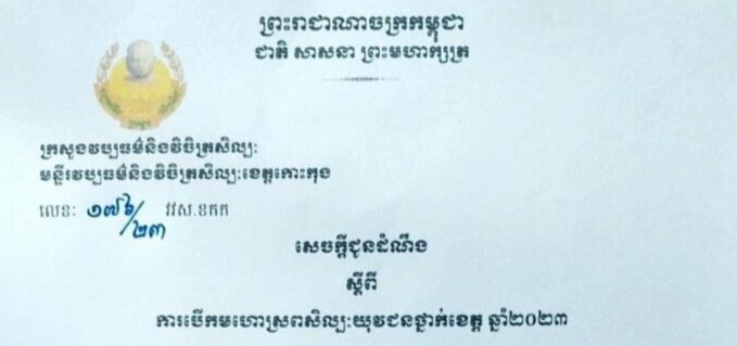 សេចក្ដីជូនដំណឹង ស្ដីពីការបេីកមហោស្រពសិល្បៈយុវជនថ្នាក់ខេត្ត ឆ្នាំ២០២៣