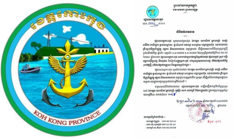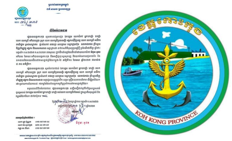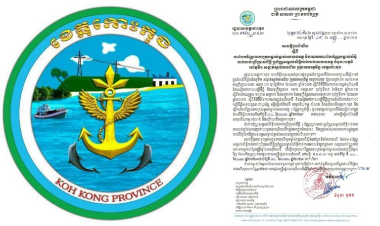 លិខិតអំពាវនាវ របស់រដ្ឋបាលខេត្តកោះកុង