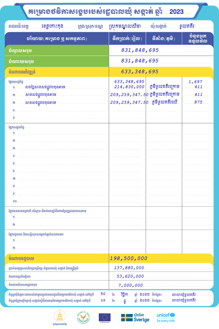 រដ្ឋបាលឃុំទួលគគីរ ស្រុកមណ្ឌលសីមា ខេត្តកោះកុង មានកិត្តិយស ផ្សព្វផ្សាយជូនសាធារណជនអំពី គម្រោងថវិកាសង្ខេបរបស់រដ្ឋបាលឃុំ សង្កាត់ ឆ្នាំ២០២៣