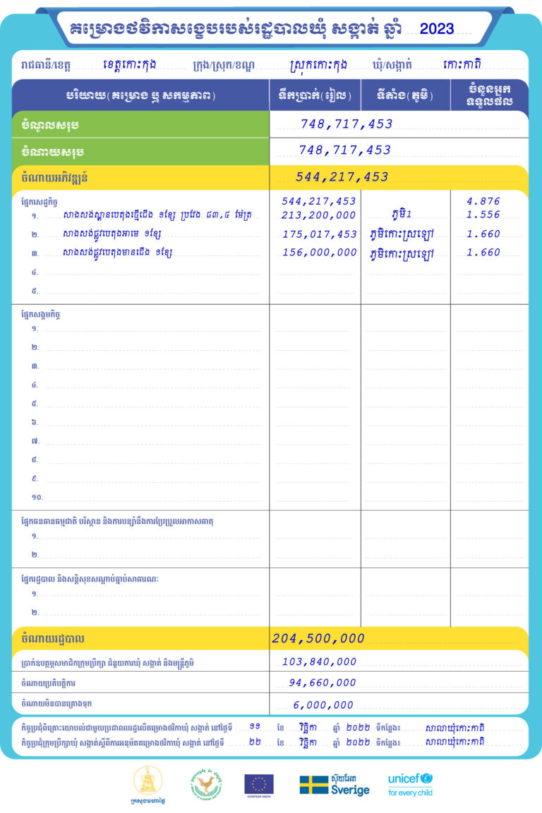 រដ្ឋបាលឃុំជីខលើ ស្រុកស្រែអំបិល ខេត្តកោះកុង មានកិត្តិយស ផ្សព្វផ្សាយជូនសាធារណជនអំពី គម្រោងថវិកាសង្ខេបរបស់រដ្ឋបាលឃុំ សង្កាត់ ឆ្នាំ២០២៣