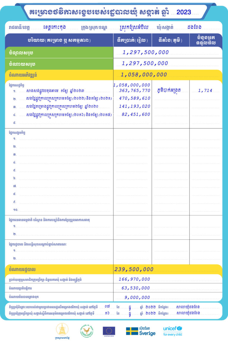 រដ្ឋបាលឃុំដងពែង ស្រុកស្រែអំបិល ខេត្តកោះកុង មានកិត្តិយស ផ្សព្វផ្សាយជូនសាធារណជនអំពី គម្រោងថវិកាសង្ខេបរបស់រដ្ឋបាលឃុំ សង្កាត់ ឆ្នាំ២០២៣