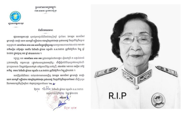 ដំណឹងមរណភាព ក្រុមប្រឹក្សាខេត្ត គណៈអភិបាលខេត្ត កងកម្លាំងប្រដាប់អាវុធ និងមន្រ្តីរាជការគ្រប់លំដាប់ថ្នាក់ក្នុងខេត្តកោះកុង មានទុក្ខយ៉ាងក្រៀមក្រំ ដោយលោកជំទាវ អោម អេម សមាជិកក្រុមប្រឹក្សាខេត្តកោះកុង ចាប់ពីអាណត្តិទី១ ដល់អាណត្តិទី៣ បានទទួលមរណភាព នៅវេលាម៉ោង ១ និង៥៣នាទីរសៀល ថ្ងៃទី០៦ ខែធ្នូ ឆ្នាំ២០២២ ក្នុងជន្មាយុ ៧៥ឆ្នាំ ដោយរោគាពាធ