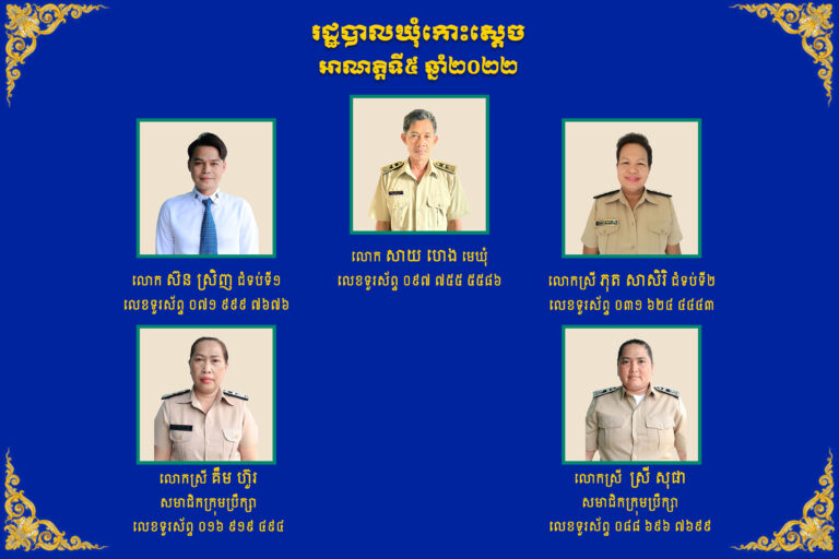 ក្រុមប្រឹក្សាអាណត្តិទី៥ ឃុំកោះស្តេច ស្រុកគិរីសាគរ ខេត្តកោះកុង ឆ្នាំ២០២២