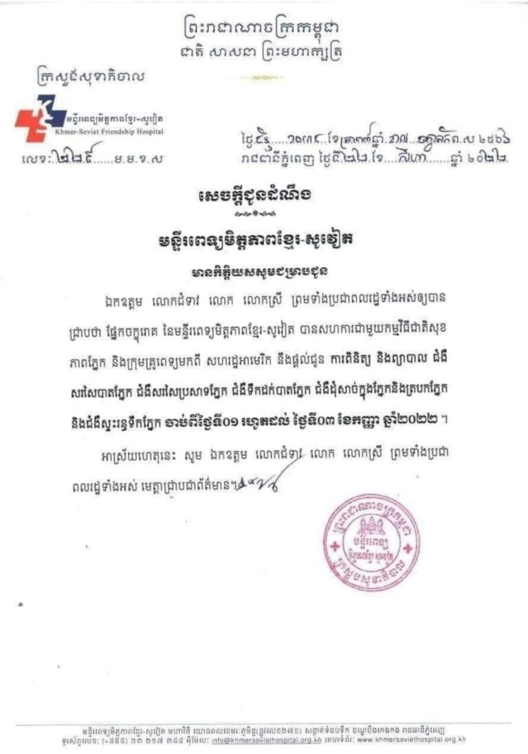 មន្ទីរពេទ្យខ្មែរសូវៀត ពេទ្យខ្មែរ-អាមេរិក សហការផ្ដល់ការពិនិត្យ និងព្យាបាលភ្នែក ជូនពលរដ្ឋកម្ពុជា ពីថ្ងៃទី០១ ដល់ ០៣កញ្ញា នៅមន្ទីរពេទ្យមិត្តភាពខ្មែរ-សូវៀត