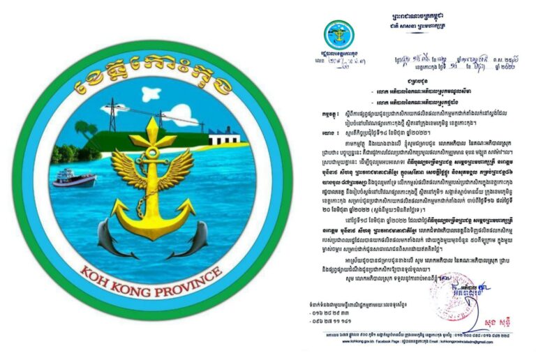 សេចក្តីជូនដំណឹង ស្តីពីការចាក់វ៉ាក់សាំងបង្ការជំងឺកូវីដ-១៩ ដូសទី៥ ជូនសមាជិកអតីតយុទ្ធជនកម្ពុជា ខេត្តកោះកុង