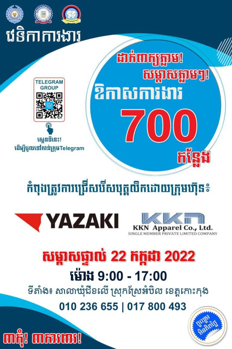 ឱកាសការងារ ៧០០កន្លែង ជួបគ្នានៅសាលាឃុំជីខលើ ស្រុកស្រែអំបិល