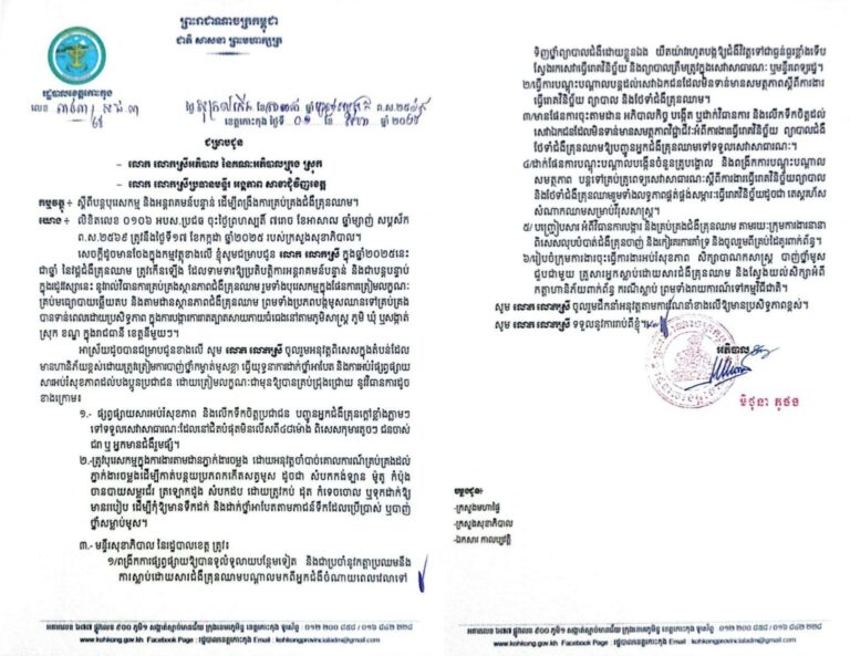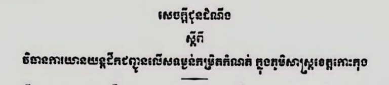 សេចក្តីជូនដំណឹង ស្តីពីវិធានការយានយន្តដឹកជញ្ជូនលើសទម្ងន់កម្រិតកំណត់ ក្នុងភូមិសាស្ត្រខេត្តកោះកុង