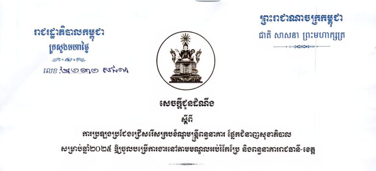 សេចក្តីជូនដំណឹង ស្តីពីការប្រឡងប្រជែងជ្រើសរើសក្របខ័ណ្ឌមន្ត្រីពន្ធនាគារ ផ្នែកជំនាញសុខាភិបាល សម្រាប់ឆ្នាំ២០២៥ ឱ្យចូលបម្រើការងារនៅតាមមណ្ឌលអប់រំកែប្រែ និងពន្ធនាគាររាជធានី-ខេត្ត