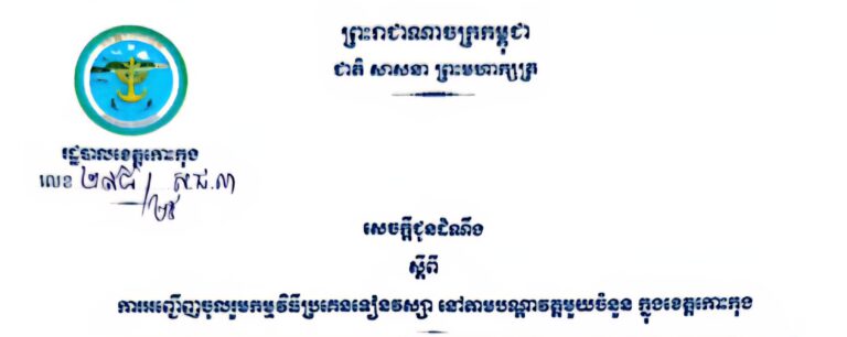 សេចក្តីជូនដំណឹង ស្តីពីការអញ្ជើញចូលរួមកម្មវិធីប្រគេនទៀនវស្សា នៅតាមបណ្តាវត្តមួយចំនួន ក្នុងខេត្តកោះកុង