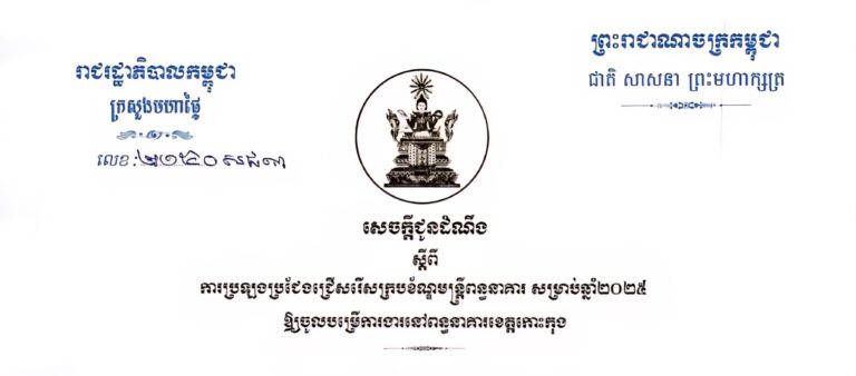 សេចក្តីជូនដំណឹង ស្តីពីការប្រឡងប្រជែងជ្រើសរើសក្របខ័ណ្ឌមន្ត្រីពន្ធនាគារ សម្រាប់ឆ្នាំ២០២៥ ឱ្យចូលបម្រើការងារនៅពន្ធនាគារខេត្តកោះកុង