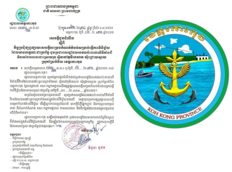 សេចក្តីជូនដំណឹង ស្ដីពីការបិទធ្វើនេសាទត្រីកាម៉ុង សម្រាប់រដូវនេសាទ ឆ្នាំ២០២២ នៅក្នុងដែននេសាទសុវត្ថិភាពត្រីកាម៉ុង នៅឃុំពាមក្រសោប ស្រុកមណ្ឌលសីមា ខេត្តកោះកុង