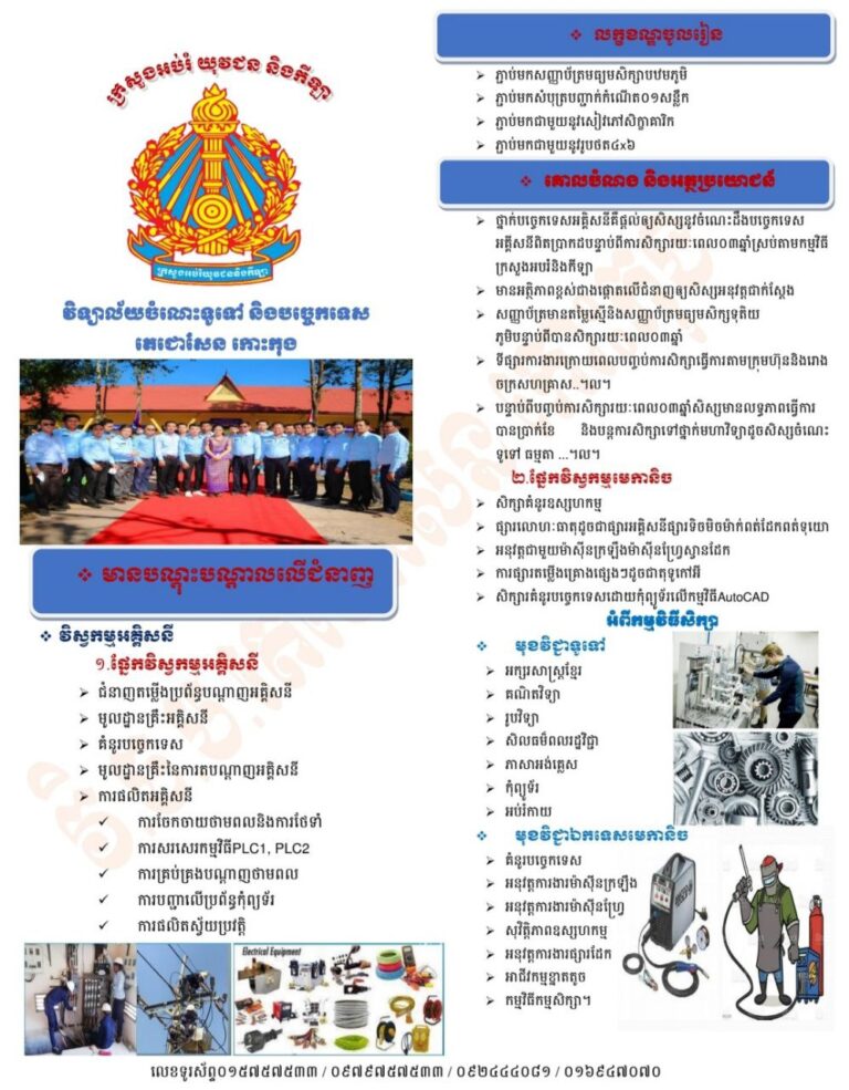 សេចក្តីជូនដំណឹង របស់់វិទ្យាល័យចំណេះទូទៅ និងបច្ចេកទេសតេជោសែន កោះកុង