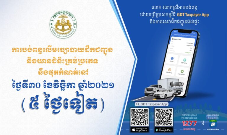 ការបង់ពន្ធលើមធ្យោបាយដឹកជញ្ជូន និងយានជំនិះគ្រប់ប្រភេទ នឹងផុតកំណត់នៅ ថ្ងៃទី៣០ ខែវិច្ឆិកា ឆ្នាំ២០២១ (៥ ថ្ងៃទៀត)