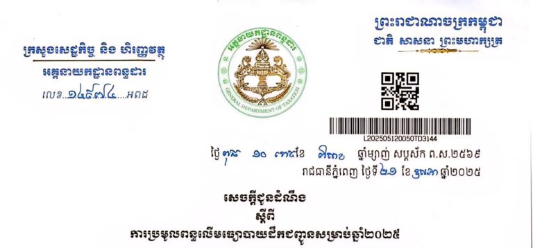 សេចក្តីជូនដំណឹង ស្តីពី ការប្រមូលពន្ធលើមធ្យោបាយដឹកជញ្ជូនសម្រាប់ឆ្នាំ២០២៥