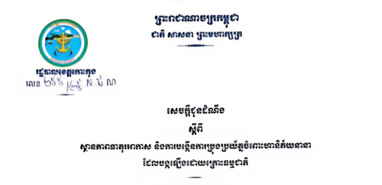 សេចក្តីជូនដំណឹង ស្តីពីស្ថានភាពធាតុរអាកាស និងការបង្កើនការប្រុងប្រយ័ត្នចំពោះហានិភ័យនានា ដែលបង្កឡើងដោយគ្រោះធម្មជាតិ