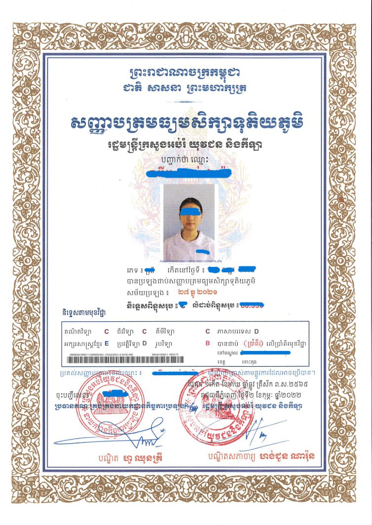 សេចក្តីជូនដំណឹង ដល់ប្អូនៗ បេក្ខជនប្រឡងជាប់សញ្ញាបត្រមធ្យមសិក្សាទុតិយភូមិសម័យប្រឡង៖ ២៧ ធ្នូ ២០២១ អាចមកទទួលសញ្ញាបត្រចាប់ពីថ្ងៃជូនដំណឹងនេះតទៅ