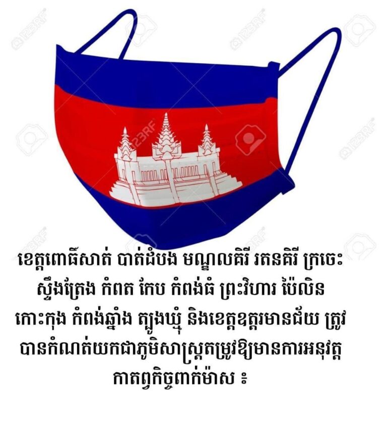 សេចក្តីជូនដំណឹង ស្តីពីភូមិសាស្រ្តដែលត្រូវអនុវត្តកាតព្វកិច្ចពាក់ម៉ាស់ និងកាតព្វកិច្ចរក្សាគម្លាតសុវត្ថិភាព