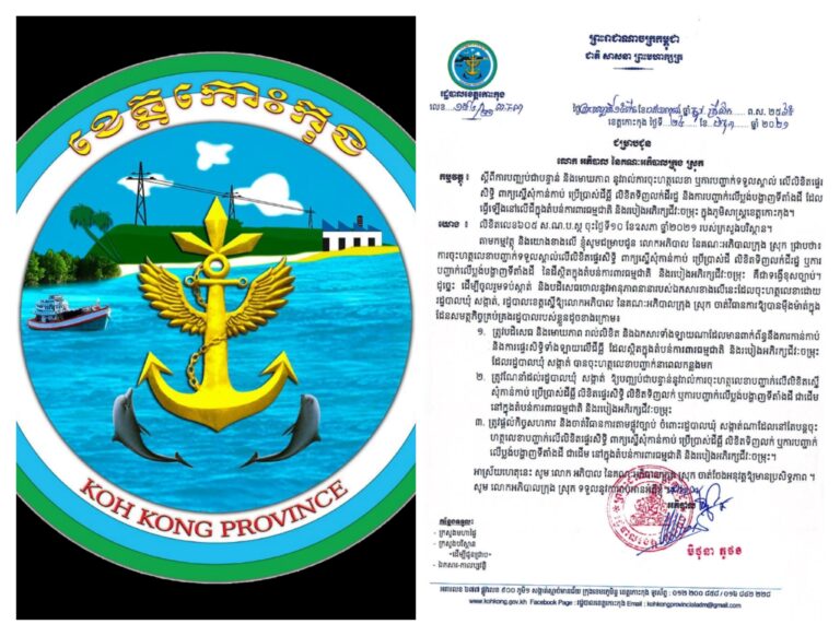 សេចក្តីអំពាវនាវ របស់រដ្ឋបាលខេត្តកោះកុង