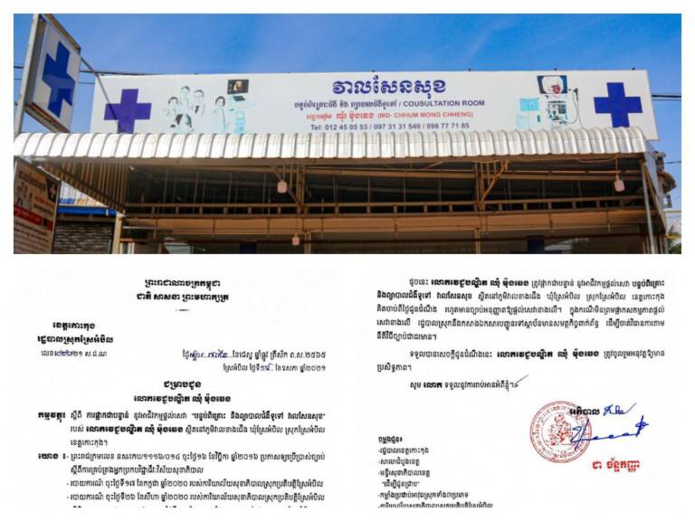 សេចក្ដីជូនដំណឹង ស្ដីពីការផ្អាកជាបន្ទាន់នូវអាជីវកម្មផ្ដល់សេវា “បន្ទប់ពិគ្រោះ និងព្យាបាលជំងឺទូទៅ វាលសែនសុខ” ស្ថិតនៅភូមិវាលខាងជើង ឃុំស្រែអំបិល ស្រុកស្រែអំបិល ខេត្តកោះកុង