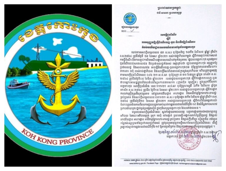 សេចក្តីជូនដំណឹង ស្តីពីការអនុញ្ញាតឱ្យដំណើរការចេញ ចូល និងបើកឱ្យដំណើរការតំបន់រមណីយដ្ឋានទេសចរណ៍នានានៅទូទាំងខេត្តកោះកុង